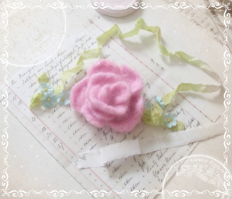 Yes, And this is when the spirit that begins and then during the practical work with the hands, the idea is gone again .... whoosh! (The rose is needle-felted, the forget-me-not and the ribbons are hand-colored.)